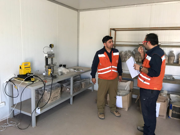 Ensayos y pruebas in situ, tales como ensayos de tracción de pernos, ensayos con pruebas PLT, ensayos con martillo Smith, ensayos de resistencia de shotcrete, y otras más.